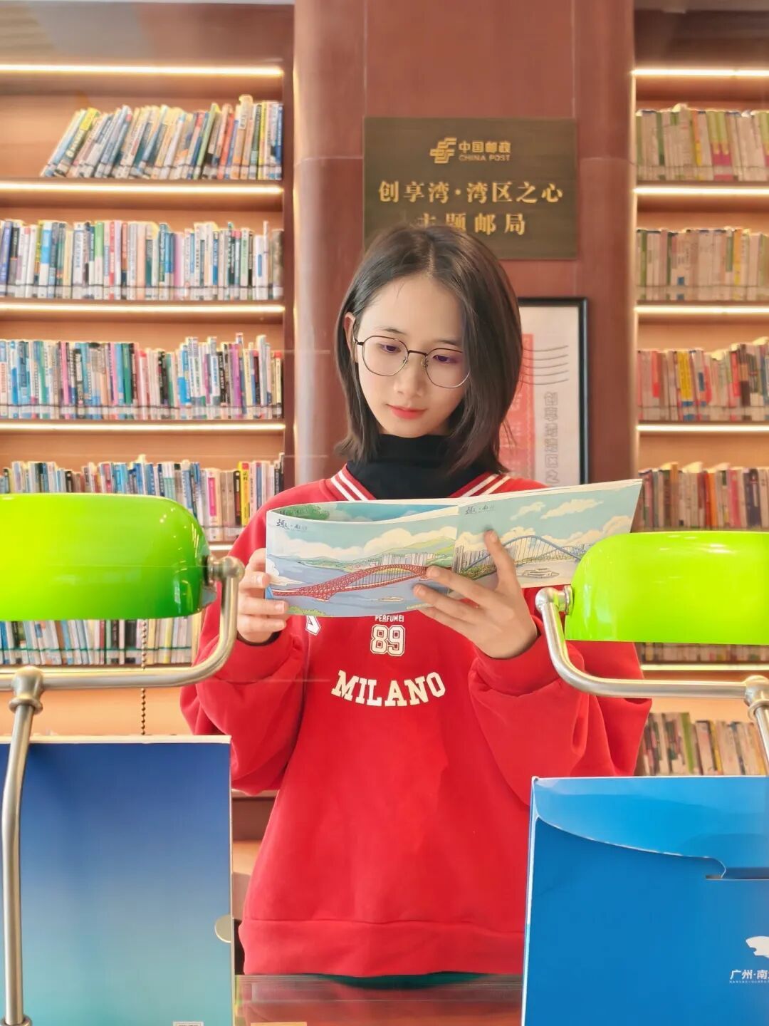 湾区之心主题邮局、馆内阅览区等